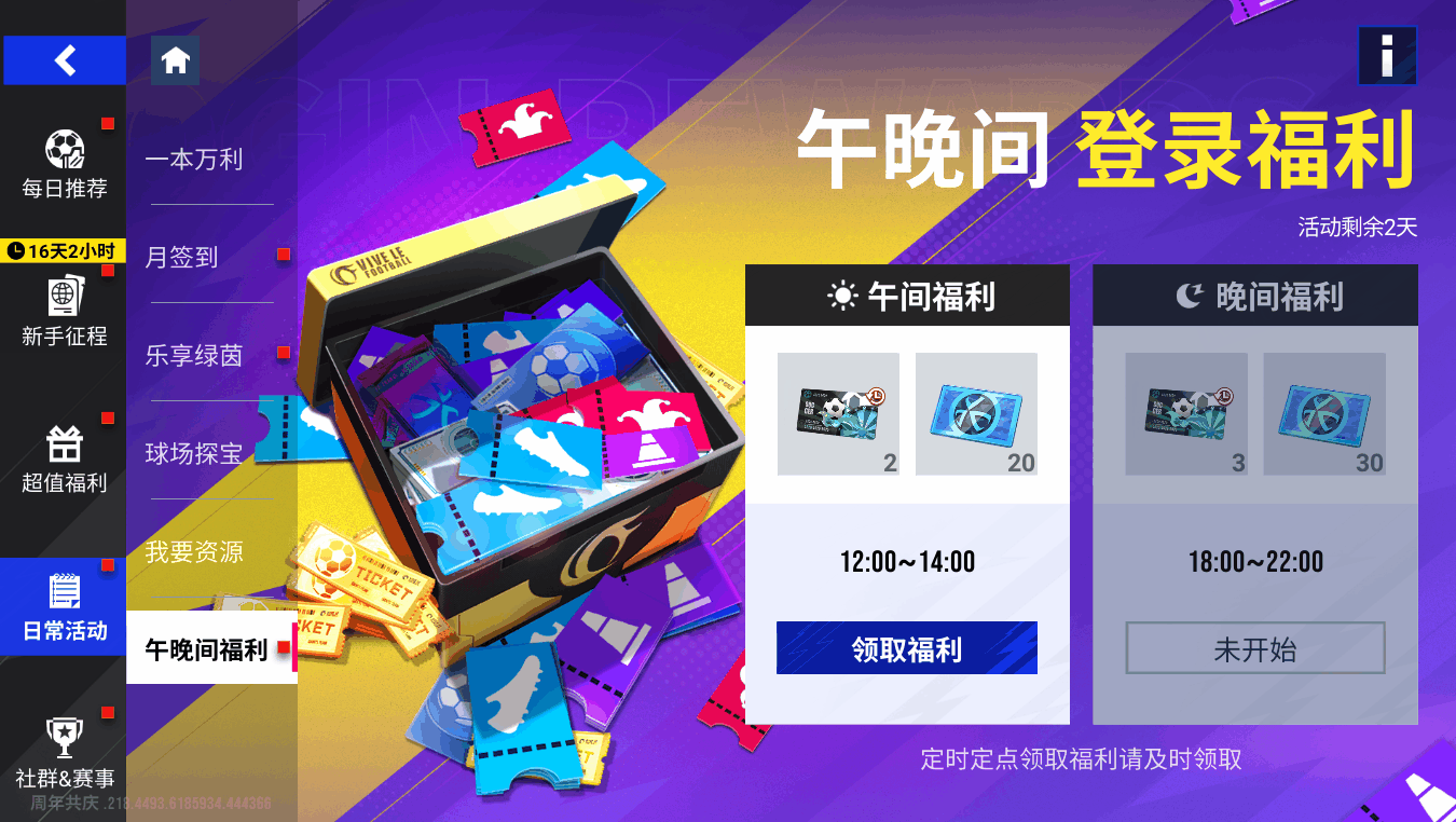 10月25日11时-10月26日11时期间,每日12时-14时、18时-22时,期间登录游戏可领取「转盘抽奖券(限时)」及「技术卡」等福利。