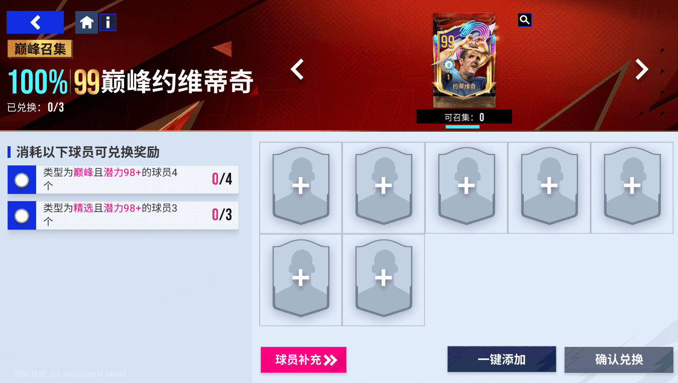 【99巅峰约维蒂奇】阵容召集挑战将于10月24日11时至11月7日11时开启,活动期间累计可进行3次召集挑战,按条件使用指定球员进行召集必得【99巅峰约维蒂奇】。
